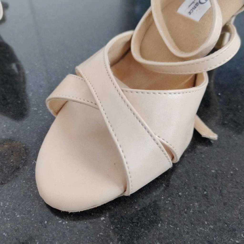 Sandália para dança de salão, possui sola em camurça e beleza única.